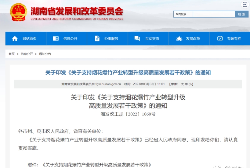 烟花爆竹是湖南传统优势产业和文化特色产业,也是传承千余年的民俗产业和富民产业。为促进烟花爆竹产业加快转型升级、实现高质量发展,特制定以下若干政策。